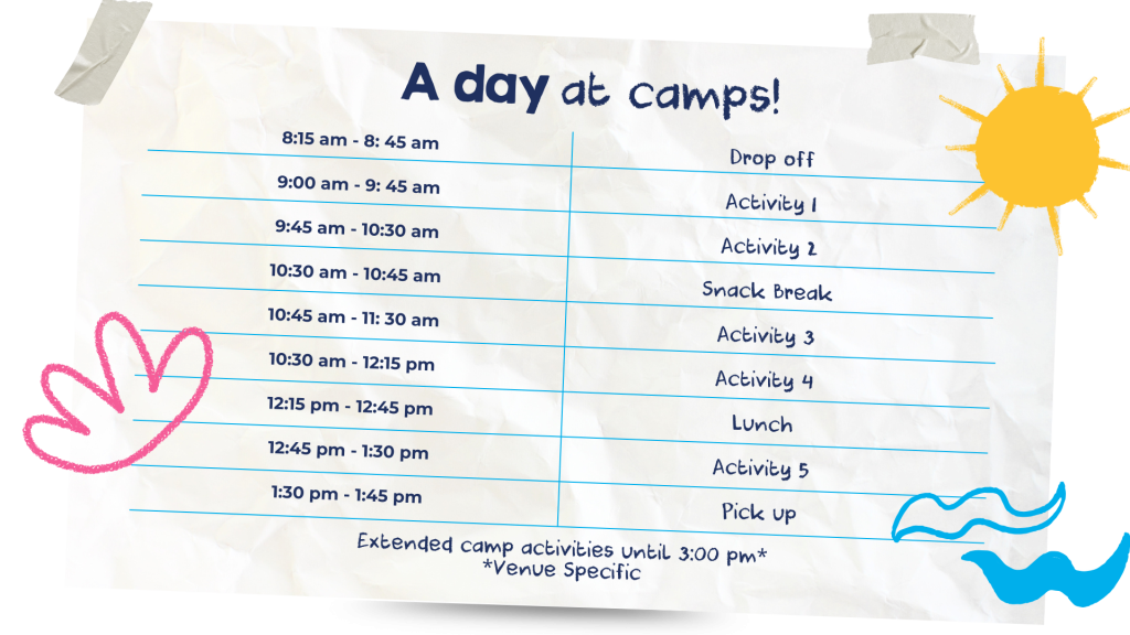From arrival to pick-up, campers rotate through high-energy sports, creative workshops, and pool time, with plenty of snack and water breaks. Groups are led by qualified coaches and tailored by age and ability for a fun, safe, confidence-building day.